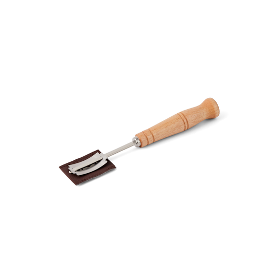 A good bench scraper to make handling your dough so much easier, a danish dough whisk to make mixing your dough a breeze and a good quality sharp bread lame to score your dough prior to baking.