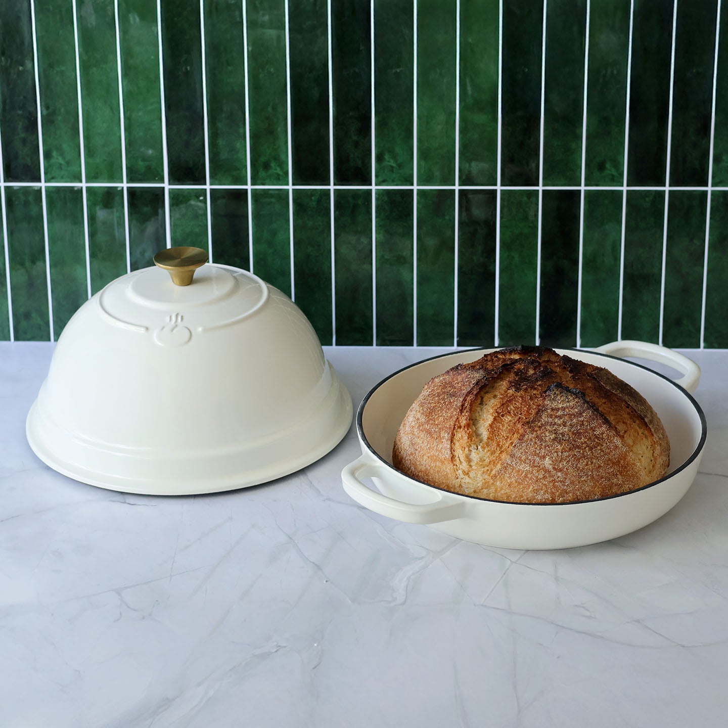 I bought a white Dutch oven a couple of weeks ago to bake sourdough rolls. I'd previously been using my enamel coated cast iron casserole pots for sourdough baking; and while they're great for loaves, I found I needed the wider base for rolls. Happy to report that the Dutch oven from You Knead Sourdough is just the ticket, and I've been having some fun experimenting with getting the roll sizes and quantity per bake just right :) Happy repeat customer here!