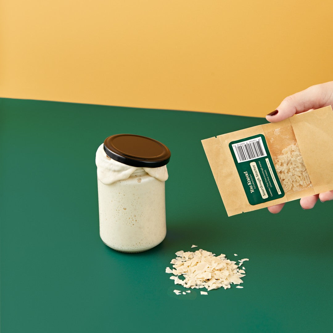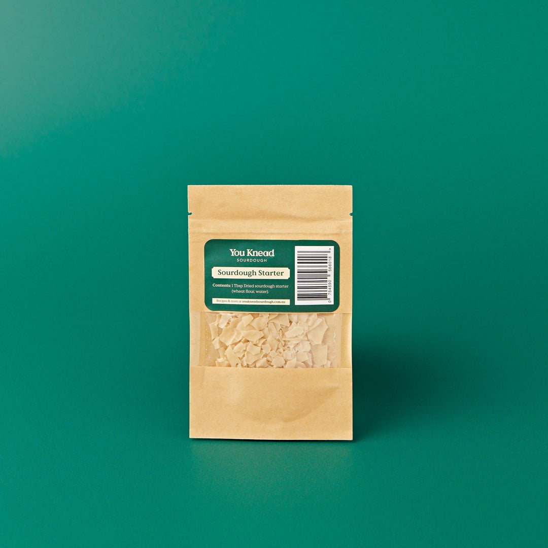 Our most important ingredient - the dried sourdough starter flakes! This is what makes sourdough, sourdough! The sourdough starter contains the wild yeast that produces bread with distinct sourdough flavours. Simply follow the instructions in the recipe (provided with the Complete Sourdough Starter Kit) or on the recipe section of the site to begin your very own sourdough starter.